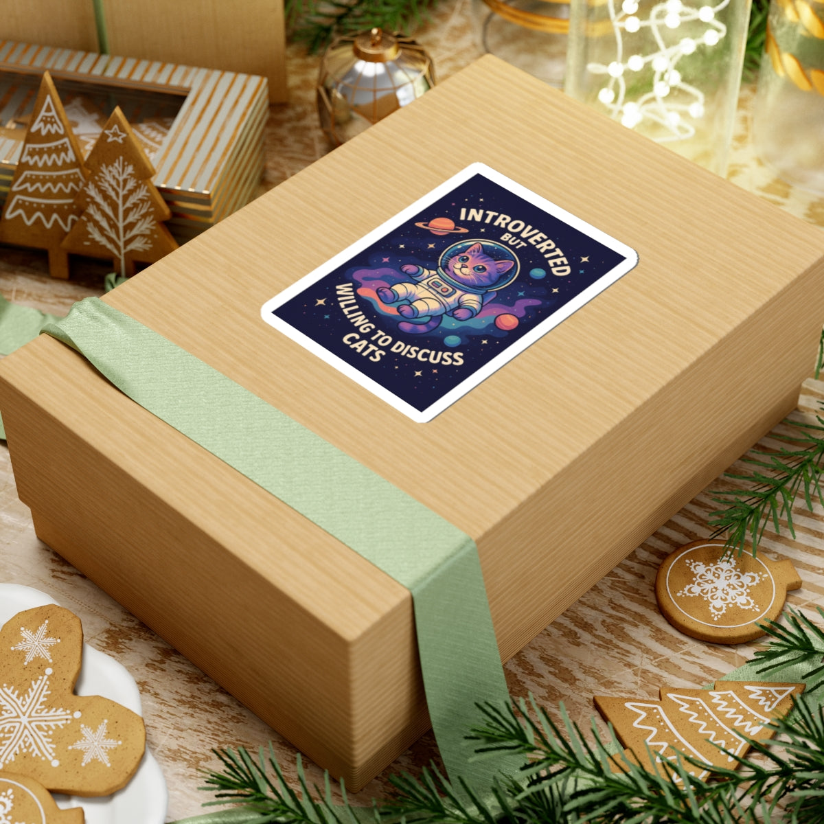 Cute Astronaut Cat Kiss-Cut Stickers, Introverted But Willing to Discuss Space, Laptop Decor, Fun Gift for Cat Lovers